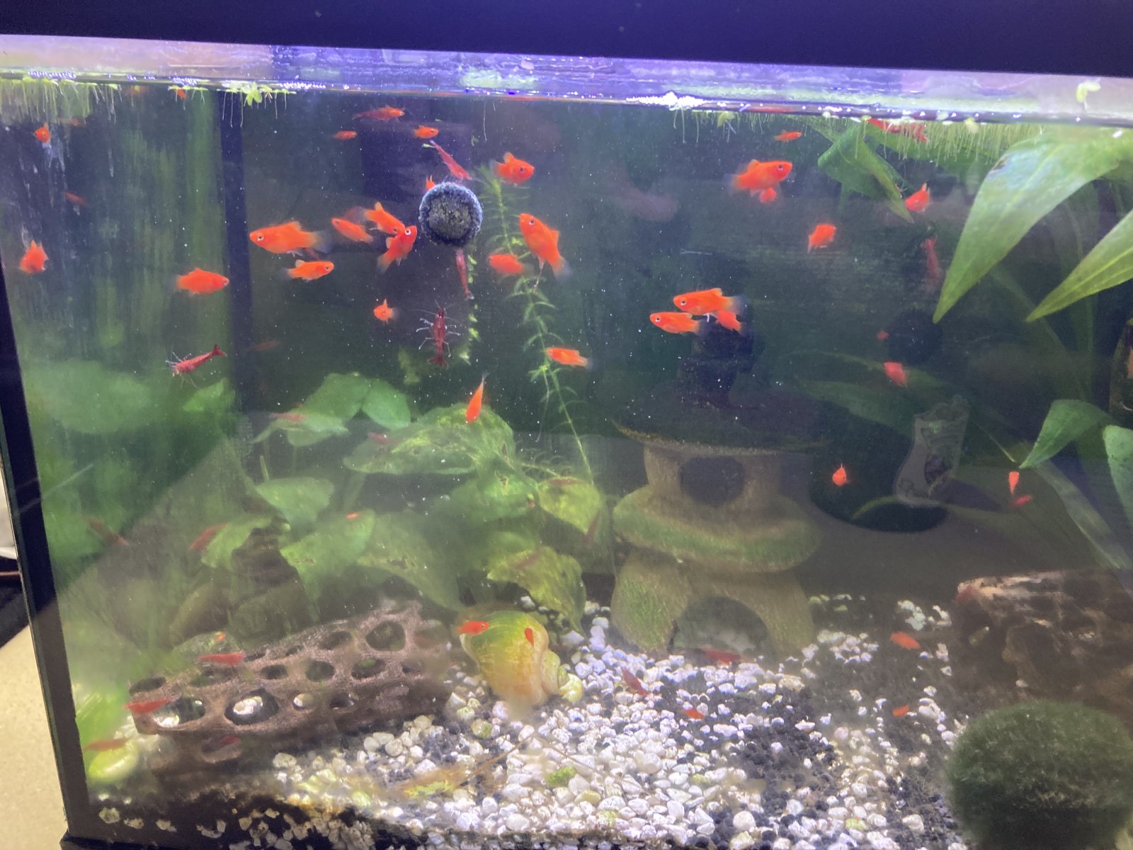 Earned $44 in store credit today by giving a bunch of dwarf red coral platy juveniles to my lfs. I’m making money in retirement. Of course I spent my store credit immediately like a drunken sailor. New heater and a piece of driftwood.