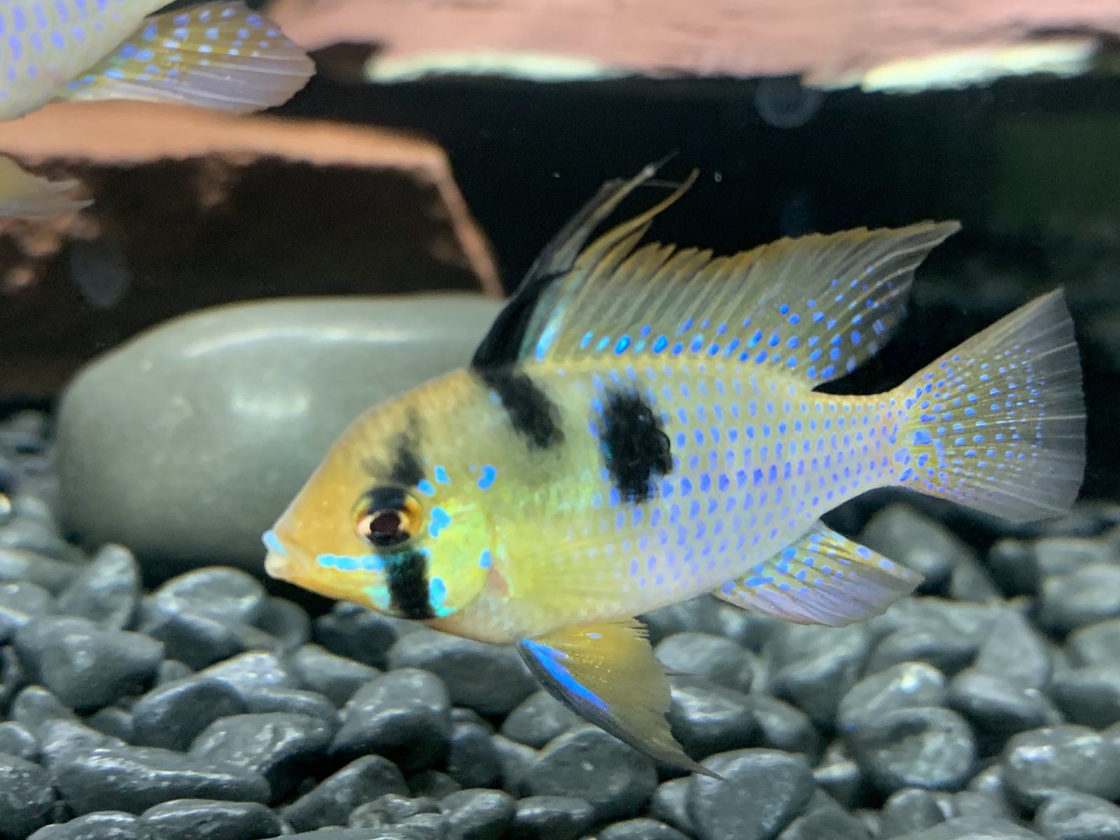 So when I first researched rams I found people claiming that the one sure way to tell the male from the female was the solid black side patch on the side. They said males have a side patch that is solid black with no blue scales showing over top, while females have a black spot where the blue can be seen inside (over) the black patch. Unfortunately, I've learned that this is completely untrue.
