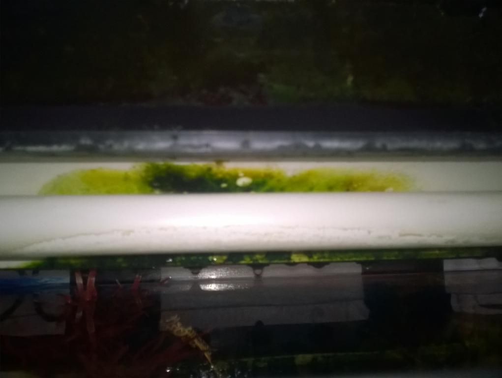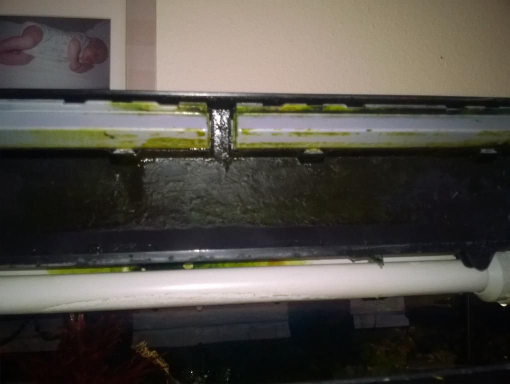 Hello guys, I have been battling with a funny, icky green substance on the inside of lid in my tank for about a year, really really weird stuff, I thought it was algae at first, but It looks too runny to be algae. It's in behind the bulb mainly so it's very difficult to clean. It does come off, but I have to scrub really hard and it stinks really bad!! Heres a pic: