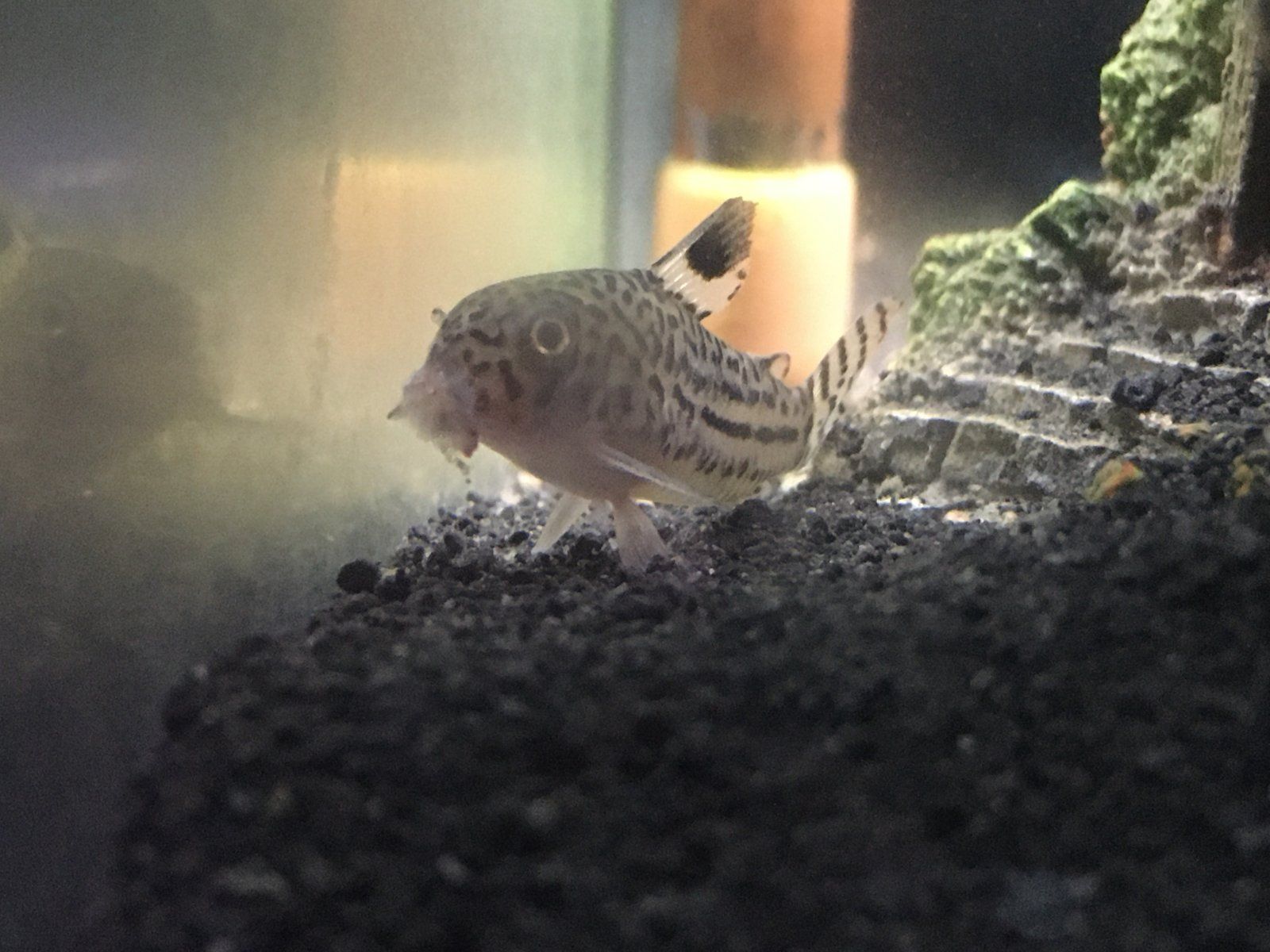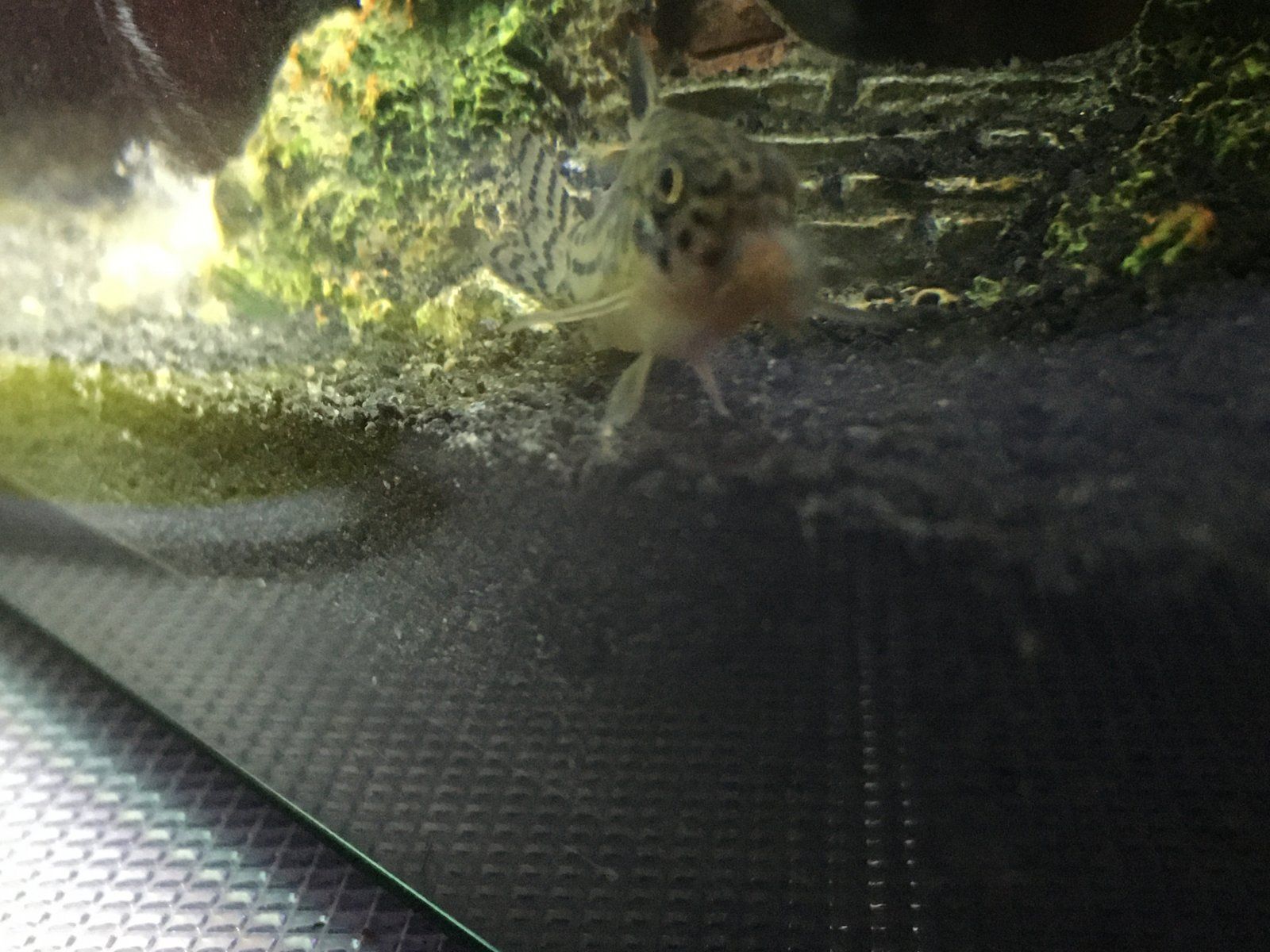 He is with other cories. I read about this sand being fine for them but when you look at the pictures you can really see how sharp it is. I will get him some softer sand.Do you have other cories in with him? Looks like this substrate isn't suited to cories and the barbels are compromised causing some infection.