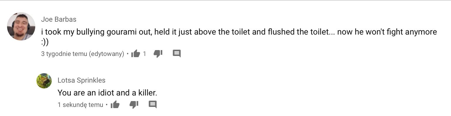 I really feel sorry for the gourami from the yt commentsI agree with @NCaquatics it would make more sense considering how well the fish looks. But there are a lot of stupid people out there with fish.