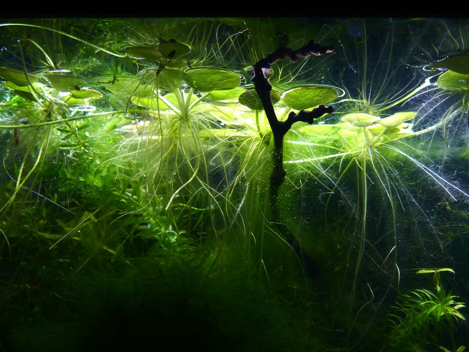 I originally got Salvinia thinking that it would have longer roots growing down into the water, but in all my tanks those roots never really developed, even when I got varieties that supposedly would have longer roots. So Salvinia is likely going to be on the very surface rather than providing hiding spots for the upper water column. That said it still works well to provide anchoring for bubble nests and such, and Salvinia is easy to grow overall.