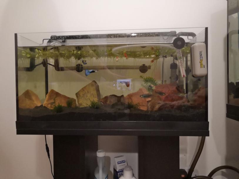Right now my 54L tank for guppies (and hopefully otocinclus by Autumn) has amazon frogbit, some elodea densa and java moss (which isn't growing all too well so far but we'll see). I'm hoping to get some more plants in, since the main idea was to have it be a planted tank.