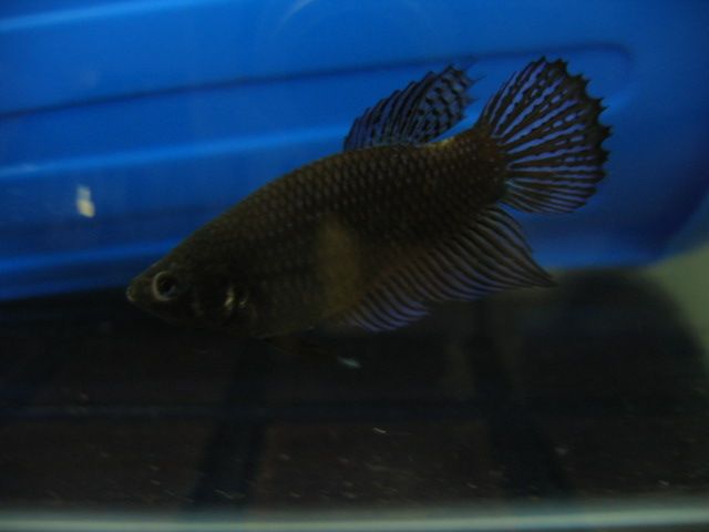 I got a new girl! But like I said in the topic, I'm awful with female tail types. She's easily twice the size of my little CT girl, in length and girth. I've called her Big Bertha. She's a pet shop buy, so I have no idea of her history or age, but all the girls they had in were this size. [I got a light bodied girl with red fins and a turqouise-ish sheen to her as well!] Can anyone tell me what tail type she is?