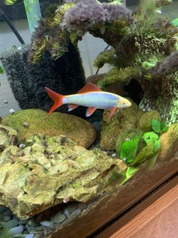 It's a barb relative, by the way. The shark marketing name has sold a lot of them, and that's probably not a good thing. They are very antisocial, living in good sized territories and not sharing space except to spawn. The circling fish are probably hoping to kill each other. They've probably come of age, and decided their tankmates are really annoying. They really are a fish that should be one per tank. They have a way of regulating that themselves, via murder.