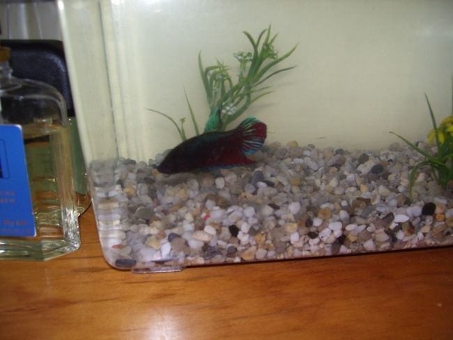 hay guys. i just thaught you could tell me what type of betta i have here. he is a red over all and a greeny tinge through the tail. he is i think a short fined fighter but im not sure maybe u could tell me..