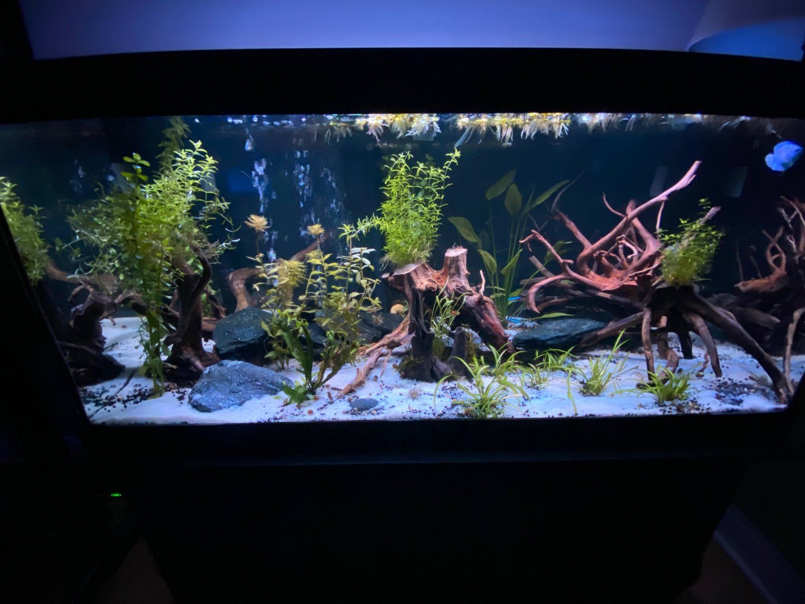 A couple of years ago, when I was tighter for space, I divided a 40 gallon into 2 2 footers to raise killie fry in. I looked at it last night, and realized with the space I have now, I no longer need that. So today, I removed the dividing glass, carefully, and opened the tank up. I put a HOB onto it, replanted everything to cope with the flow, and now will cycle it. I left all the greenery, and the two air driven filters I was using in it, so the filter should be colonized quickly.