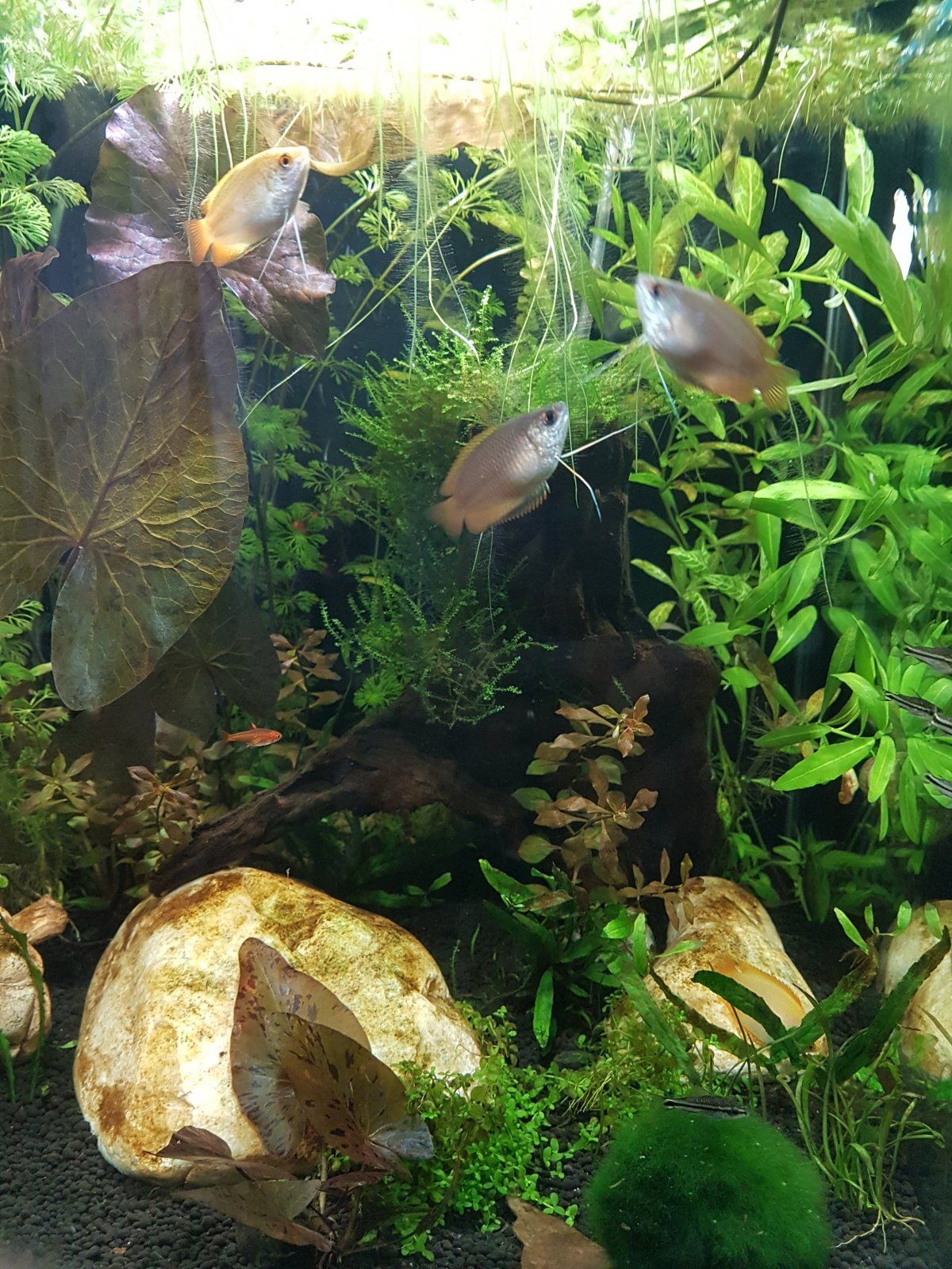 "How-do-you-do feelers" made my heart melt. Adorable. Would love to see pictures if you have any of them!I love my honey gouramis with their little how-do-you-do feelers. They are all females so the days are spent greeting and eating