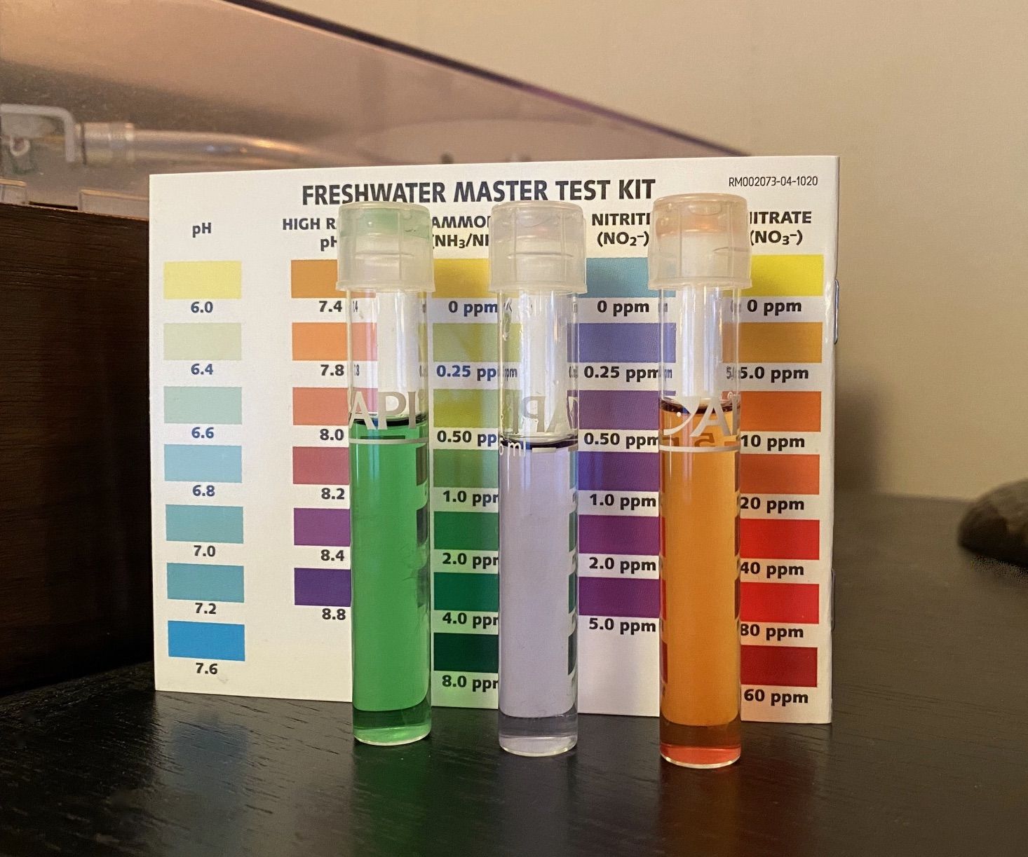 Yes, I forgot to mention - the API test. After one drop it is the palest of blue, then with each subsequent drop it darkens. I don’t mind doing a water change I just wondered if it will interrupt the cycle or something, which to a novice like me, appeared to be near completion.Are they the API testers? What colour is the water after adding the first KH drop?