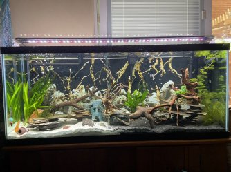 So quick update for you, I added one more of the tetras, and I don’t know if it’s because it’s a female (the rest look like males), or just the extra comfort, but they are shoaling so much better. They were active before, but just with that one new pal they are way more a social grouping. I never would have guessed just one more fish would make such a huge difference.Keep us posted, those tetras are on our list of possible stocking options, so interested how your tank works out in the long term!