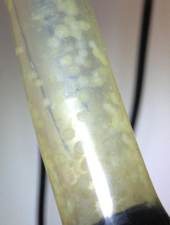 In the process of cycling my tank and Over the last few days I have noticed this white gunk growing that looks like bacteria colonies forming on the insides if the pipes, and when I squeeze the pipe it all falls off and fills the tank with stuff. Was just wondering what it was and if it matters that its there as the tank had only been set up a week?.