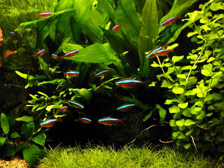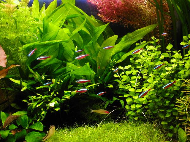 I took a couple of photos of my Cardinal Tetras. They always shoal better just before lights out for some reason, I guess it's a safety thing. The latest additions (20) have grown visibly already, They're fed on Aquarian Growth Flake, Nutrafin Micro-Granules and frozen Bloodworm. Since I traded my Angels they're a lot more confident, although my wife is still not happy with me. She doesn't understand the concept of the plants being the main feature, with the fish complimenting the aquascape or should I say she understands it but prefers to have bigger fish to look at. Down to personal taste really, pity we don't share it!