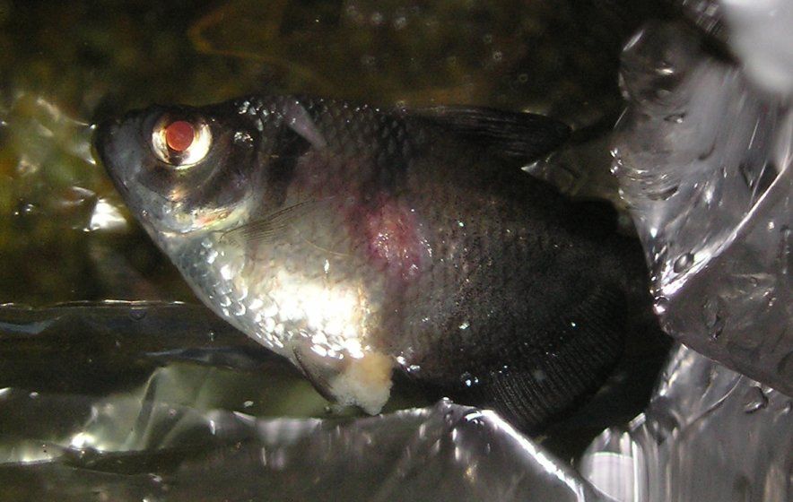 we have a 3 black widows and one of them is swimming VERY oddly. Can't seem to keep its balance, looks a bit bloated, and it has what looks like eggs coming out, although I'm not sure. Seems to be gasping for air swimming around, but (s)he is not going up to the surface.