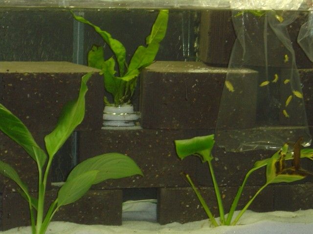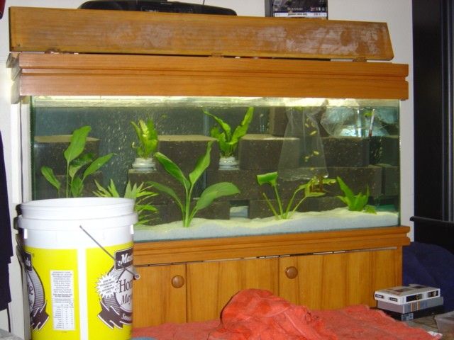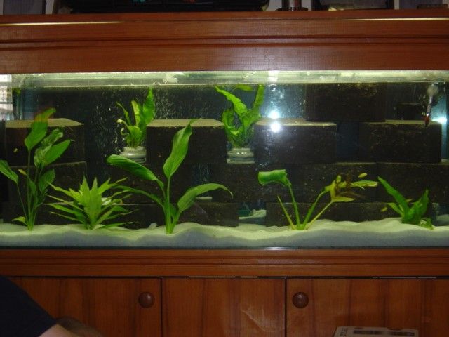 This is about day 8 of cycling, i just got some plants from my other 80 gallon setup and the bricks are grantie smashed up mixed with concrete stuff, my dad got them.