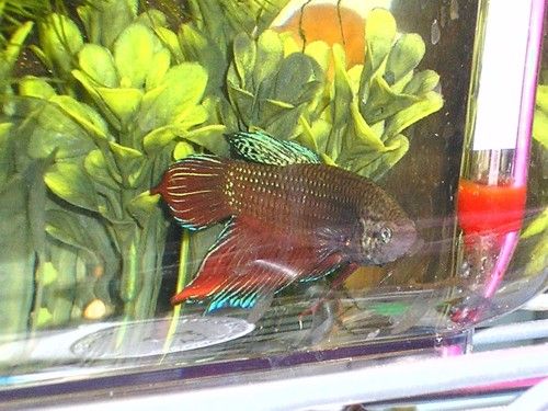Just thought I'd show a pic of my wild betta splendens male. I read in a forum recently (from someone who I thought would know better) that wild bettas are dull muddy brown. B) Obviously they haven't seen a wild betta who's happy, unstressed and has female company!