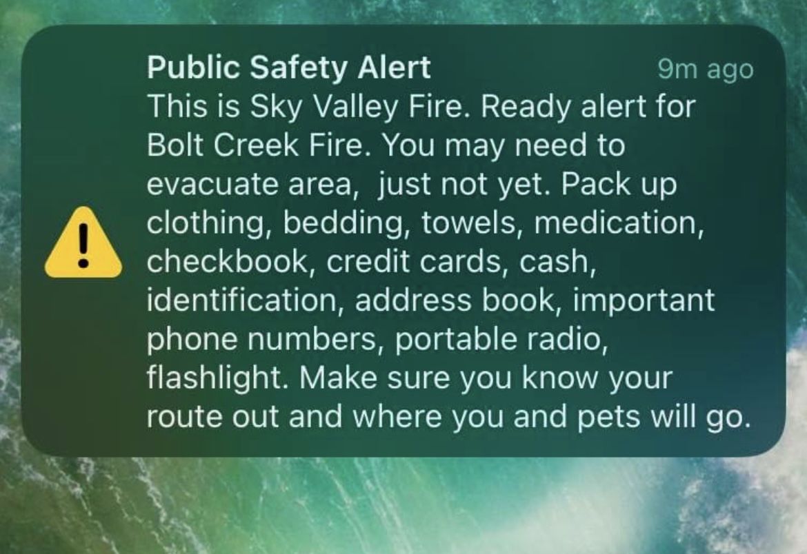 Clear vegetation around your property (mow lawns and get rid of dead plant matter).My small town is in the fire path. The road leading up to the mountains has 5 other towns before just forest. 3 have been evacuated and the next one (the only one between us and the fire) is on standby, probably evacuated by the end of the day. Police are telling people to pack up their livestock and be ready to go at a moments notice.