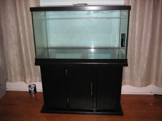 I'm kind of proud of the tank ATM. See below for the before and after pictures. That's how I spent my weekend. I can't decide. Do you think I should put a nickel handle on the middle door? It's the only one that opens...but I don't know if I should. What do you think?