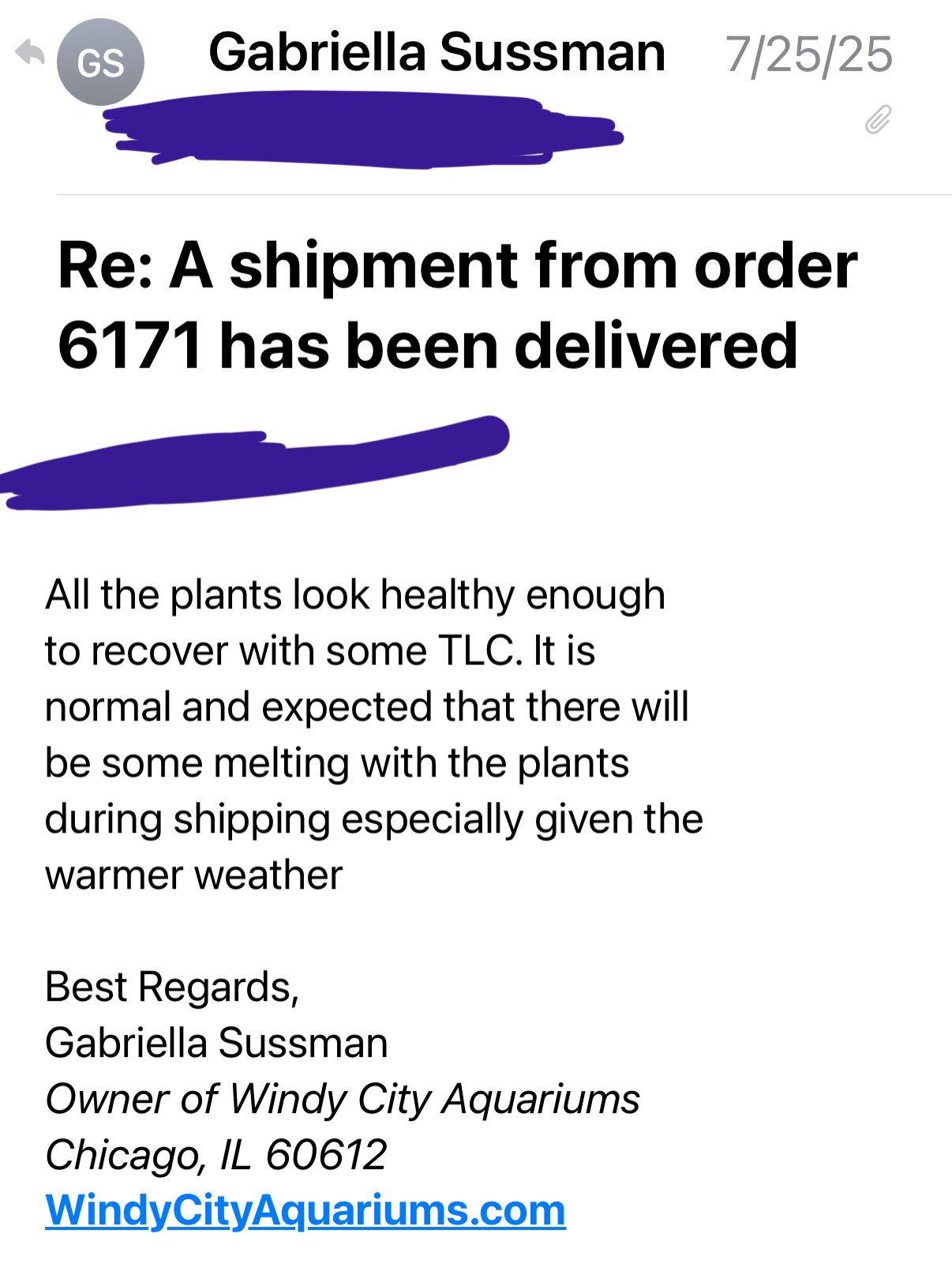 I submitted a review for their website upon request & I emailed them about the product I received. I wasn't looking for a refund because I had already thrown away the plants before taking a picture. I received no response from my email and my review wasn't posted.