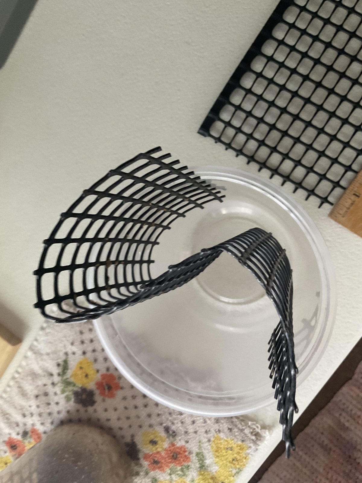 You have the perfect consistency doing it like you’re doing . That’s the same thing I do . You can get the plastic mesh at any yard and garden store . It’s what people use to train vines onto and make small pest barriers . The holes are about 1/2 x 1/2 inch square and you need a piece about 9 x 5 which you fold into an S shape to put in your container . I brush off the dried larvae husks , rinse and go again . Way cleaner than excelsior and doesn’t make a mess in the aquarium .I'm trying this idea. I went to a local hardware store and they didn't have this. At least not in a small enough amount that I was willing to pay for. But there was an arts and craft store right by there. I got some plastic mesh canvas and used that instead.View attachment 347905View attachment 347906You have the perfect consistency doing it like you’re doing . That’s the same thing I do . You can get the plastic mesh at any yard and garden store . It’s what people use to train vines onto and make small pest barriers . The holes are about 1/2 x 1/2 inch square and you need a piece about 9 x 5 which you fold into an S shape to put in your container . I brush off the dried larvae husks , rinse and go again . Way cleaner than excelsior and doesn’t make a mess in the aquarium .