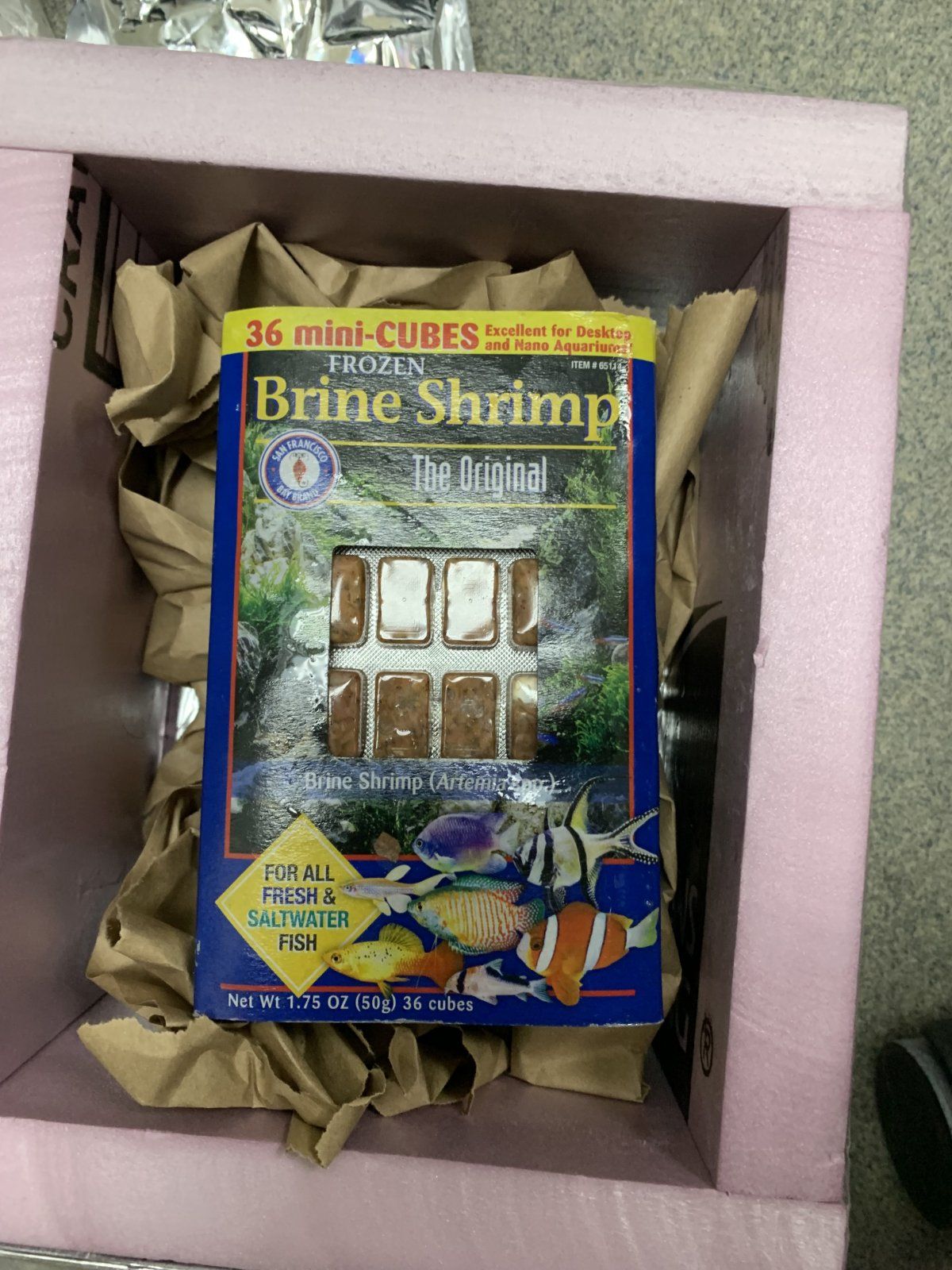 I ordered some frozen fish food on Amazon, & it took 2 weeks to get here... it's below freezing here today, but it came from Pet's Mart in Fort Worth, Texas, so it's cold right now, maybe semi frozen, it was packaged in a hand cut foam box inside a regular cardboard box, no ice pack or anything... a paperboard packaging box around the plastic cubes is soaked... kind of stinks when I opened the box ( not rotten smell, but stinky ) none of the cubes are cut open or leaked, so the smell is either on the packaging or it stinks so bad, it's going through the plastic... I'm not going to open one here at work... but will investigate further when I get home...