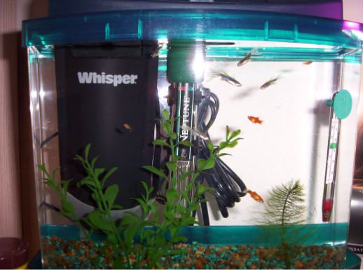 First I shall start with the teeny fishies - here is the fry tank! I think you can see all the babies in this shot too - two 2-week old twinbar platies, 2 couple month old wag tail platies, and 5 long-finned zebra danios. I wuv my baby fishies.
