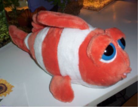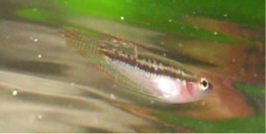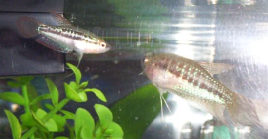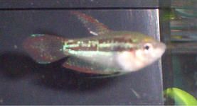 Here he is attacking the biggest fish in the tank, one of my full grown Croaking Gouramis.