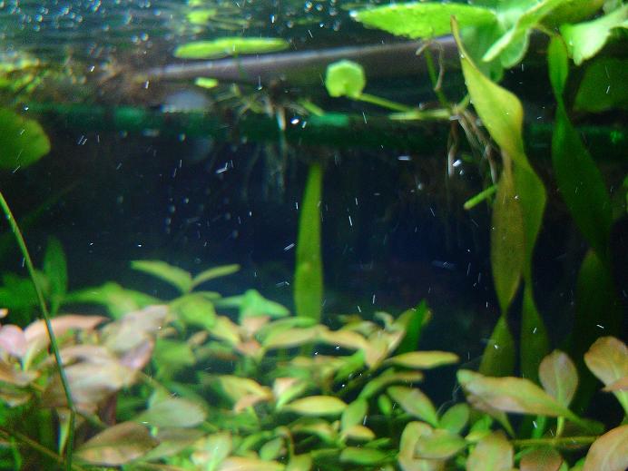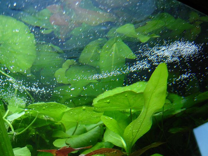Cool pics Konrad. Mine produces similar amounts, how long after your lights on does it take for your first plant to pearl? I think my record is 20 minutes but I'm only on 1.8 WPG at the moment. After two or three hours most of mine are producing bubbles and I get the same effect as you on the surface. I'll post some pics later.