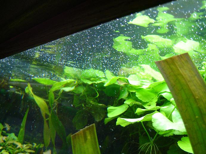right corner, the film at the surface is preventing the bubbles from breaking open, it's like a natural oxygen reactor, allowing them to dissolve completely